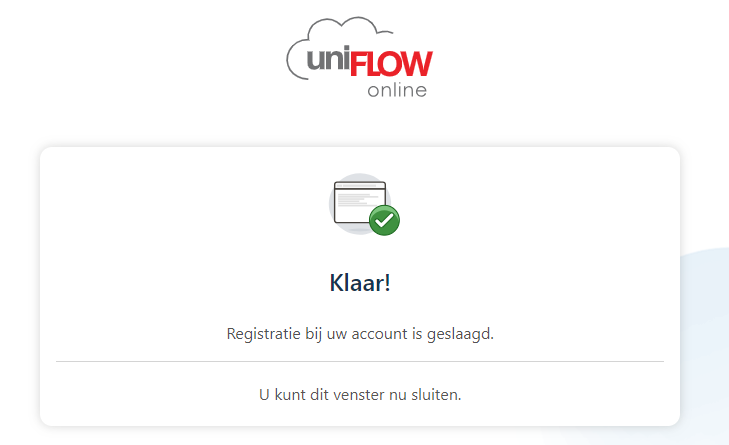 - Er wordt nu aangemeld bij de nieuw printer omgeving. Als het goed is gegaan krijg je het volgende scherm te zien: