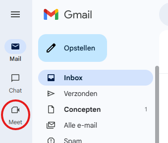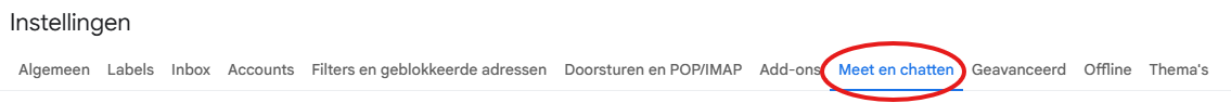 Zie je de Meet-knop nog niet in Gmail? Dan moet je deze eerst even activeren: