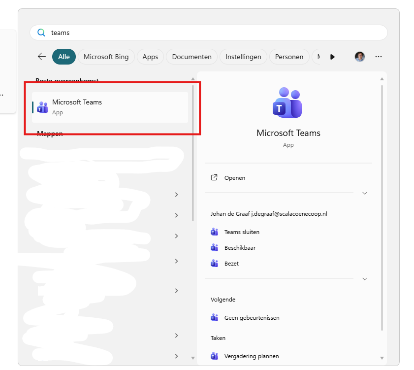 - Direct starten: Klik op de knop om meteen een vergadering te openen.
