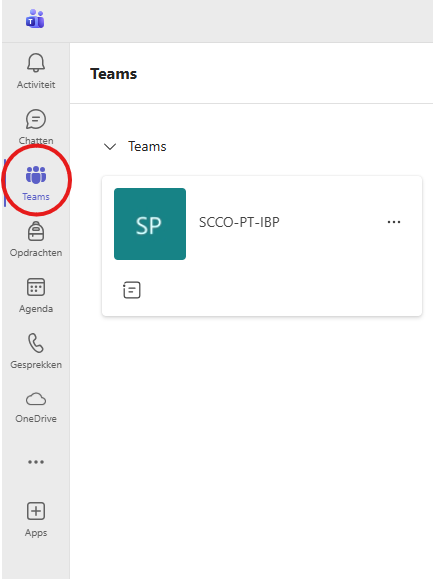 - Open Microsoft Teams en klik in de linkerzijbalk op Teams.